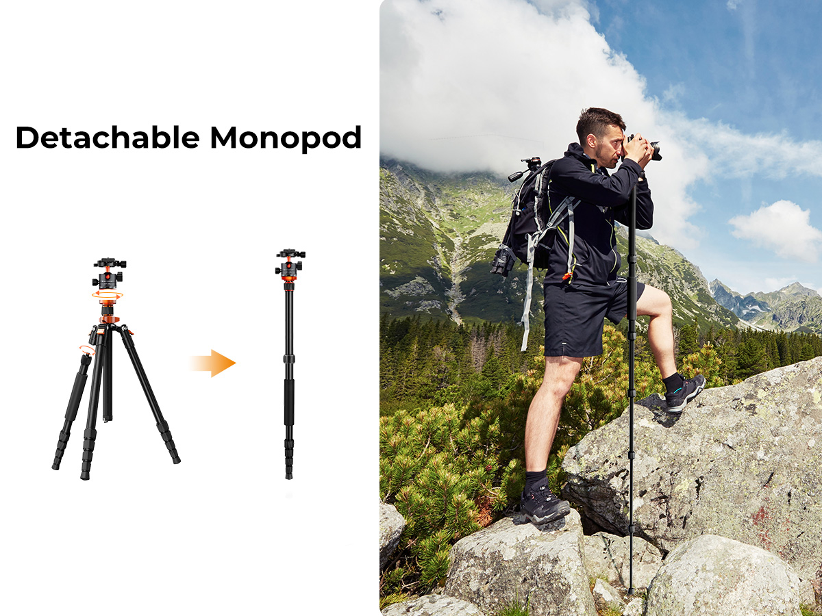 * 【Monopié desmontable】 Se puede convertir en un monopié ligero o en un simple bastón para que tus fotos sean más variadas.