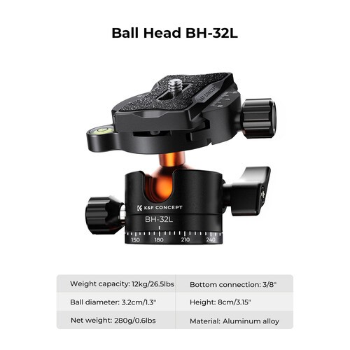 K&F K255A7 Aluminum Tripod with BH-32L Ball Head