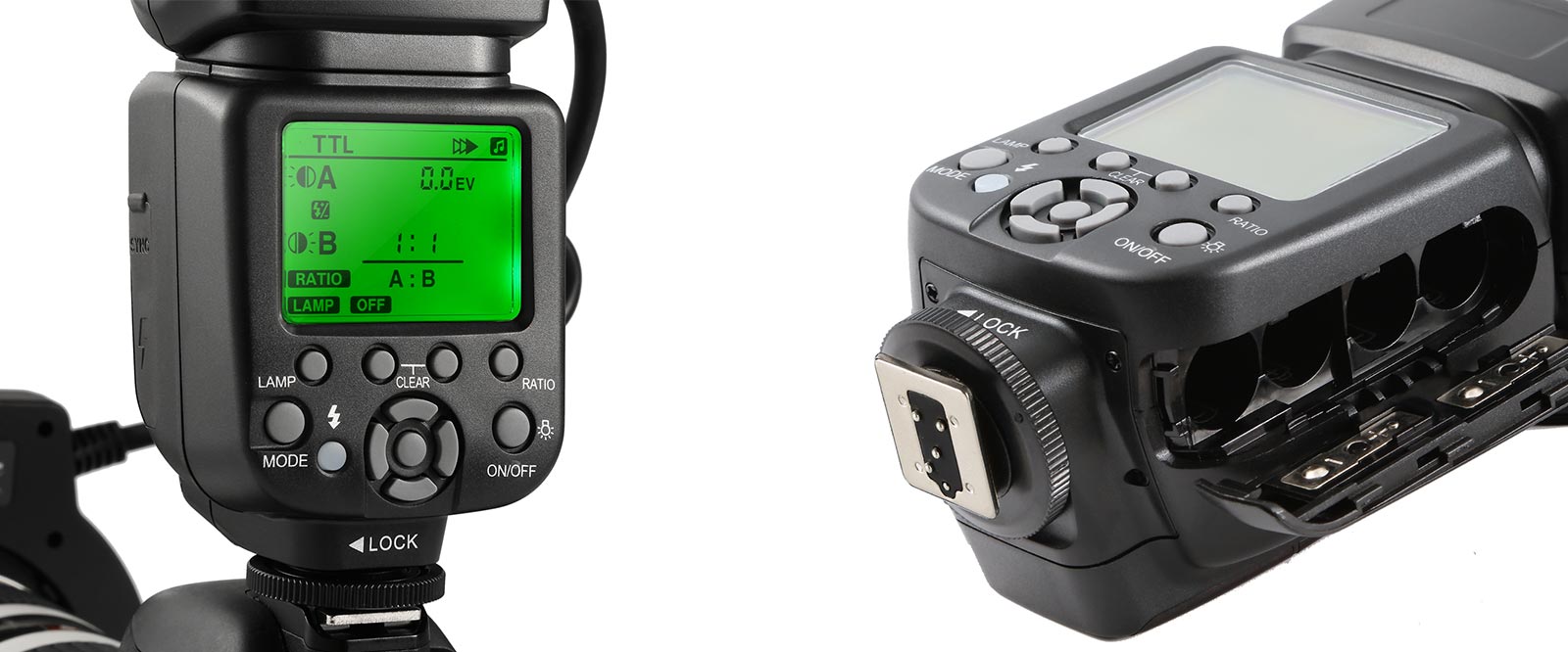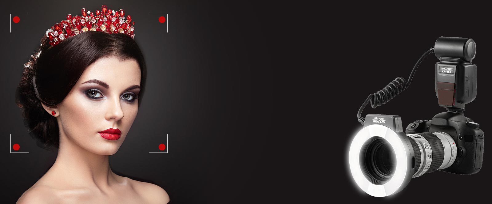 Anillo de flash macro profesional, ideal para fotografía macro, investigación científica, fotografía médica y retratos a muy corta distancia. Diseñado específicamente para cámaras réflex digitales Canon.