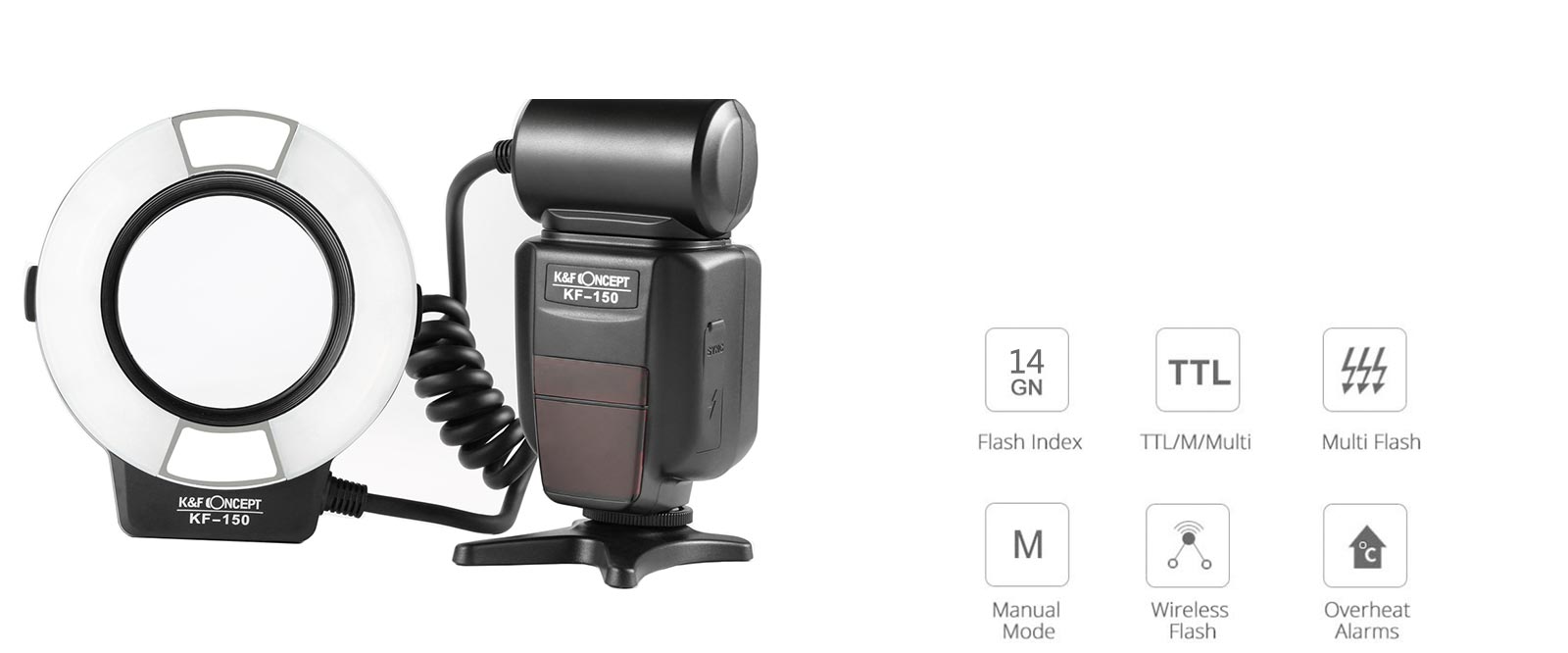 K&F KF150 TTL Marco Ring Flash for Canon EOS Rebel GN14