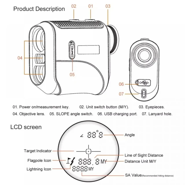 * Fácil manejo: compatible con la medición con un solo botón; al pulsar el botón de medición, se miden simultáneamente la distancia en línea recta, la distancia horizontal, la altura y el ángulo. También es compatible con el modo de corrección de distancia para golf, que proporciona datos más precisos a los golfistas.
