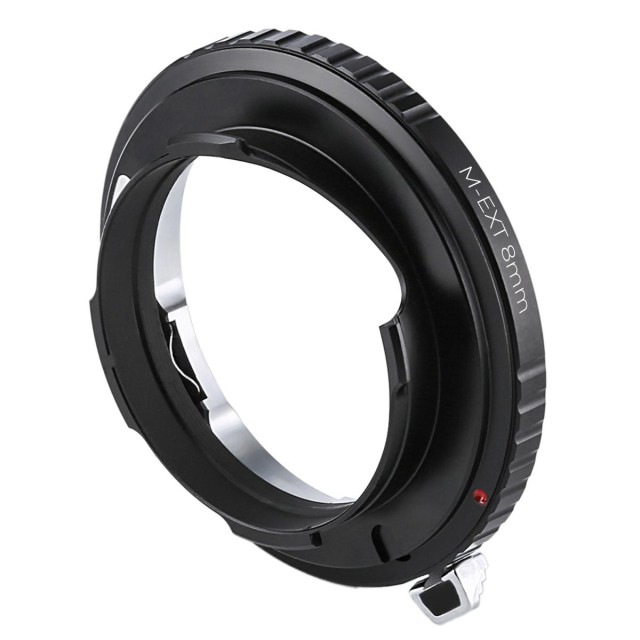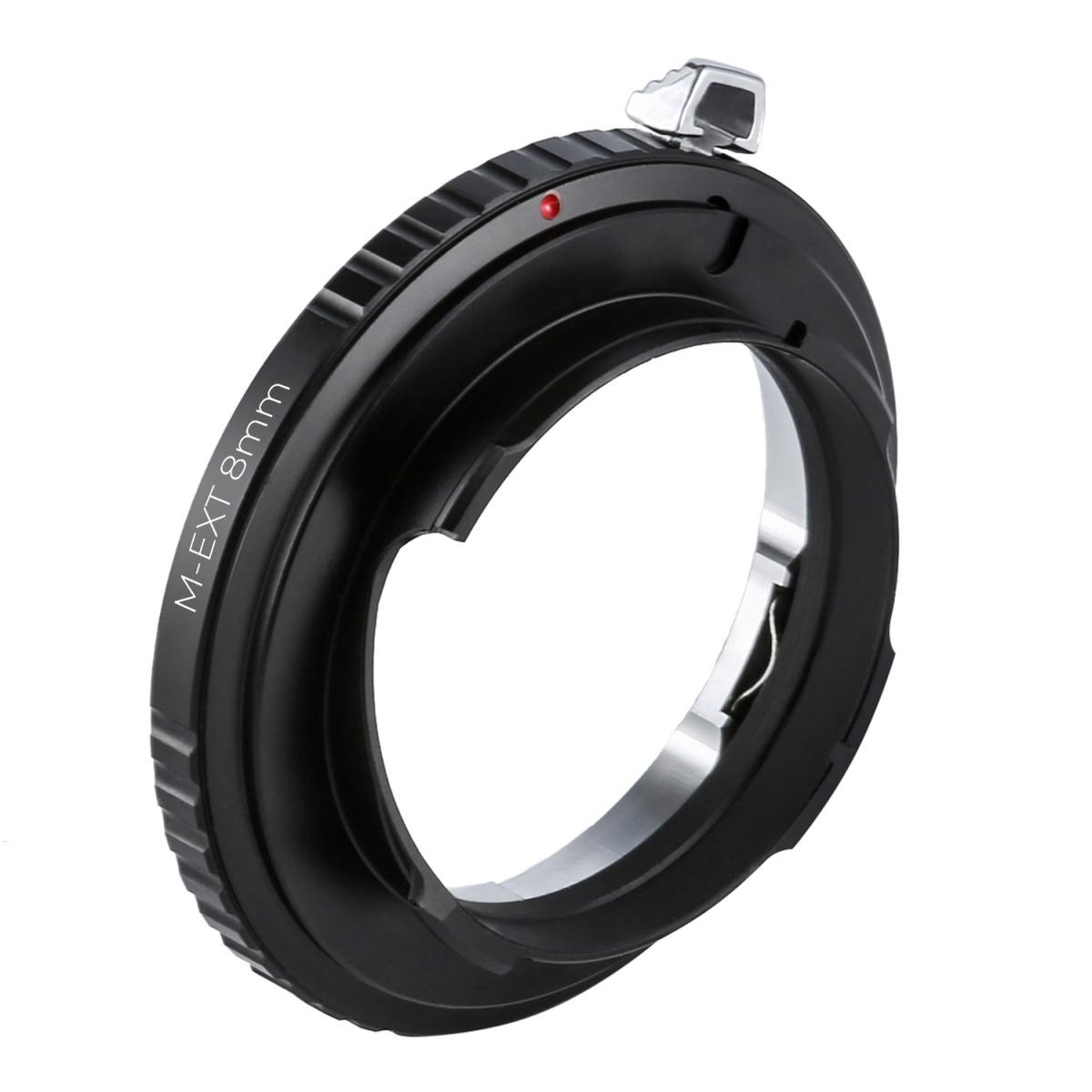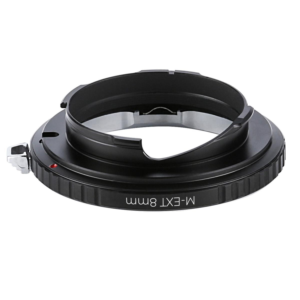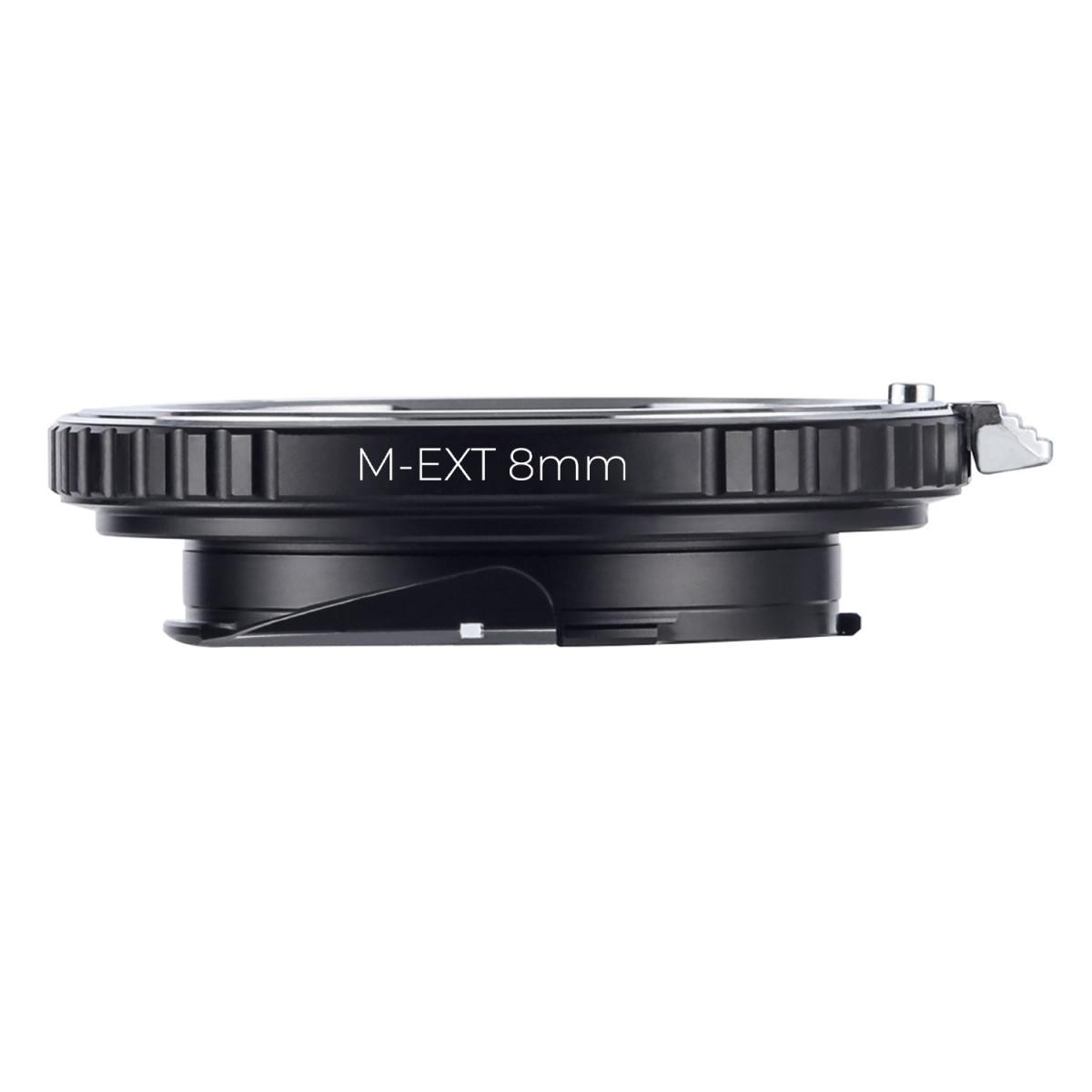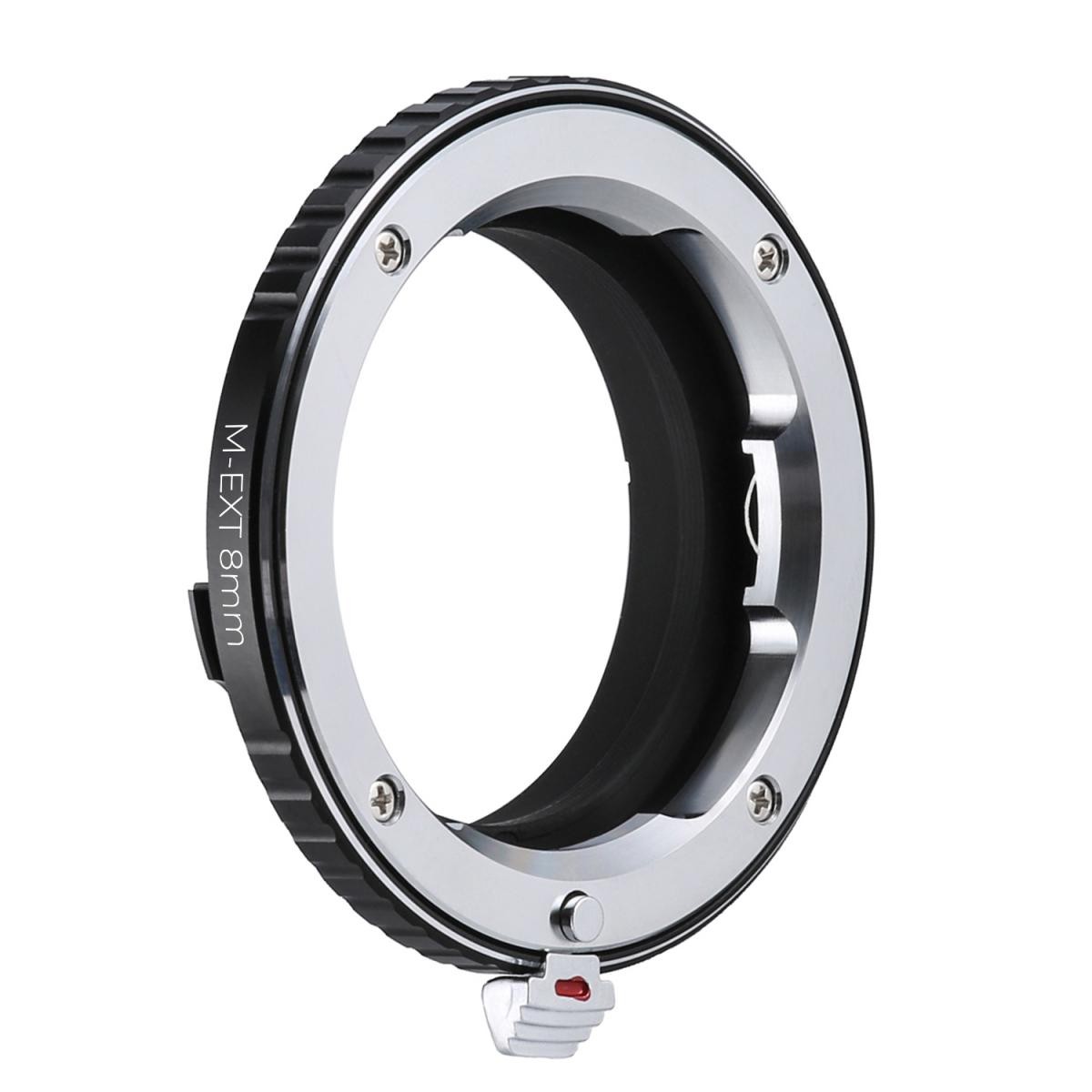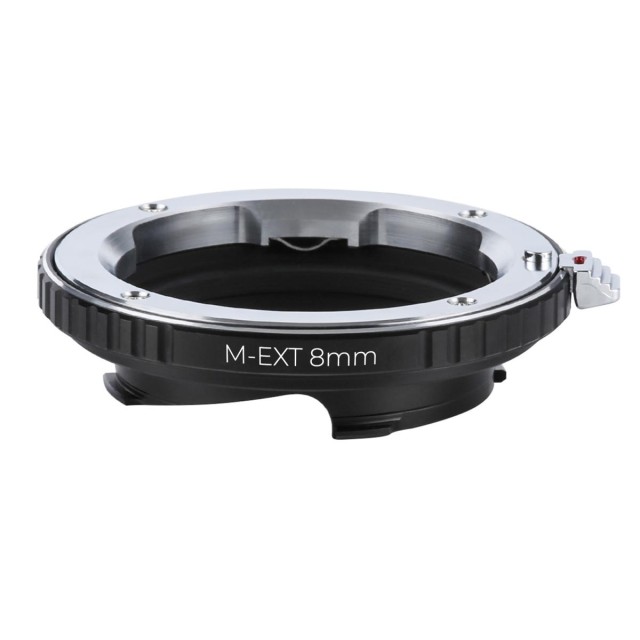 El adaptador K&F de objetivos Leica M a montura Leica M M-EXT 8 mm permite acoplar con precisión los objetivos Leica M con control totalmente manual, incluyendo el enfoque manual, la prioridad de diafragma y el enfoque al infinito. Está fabricado en una resistente aleación de cobre y aluminio y cuenta con una conexión de bayoneta suave, alineación mediante un punto rojo y una capa antirreflectante en la pared interior que evita la dispersión de la luz.