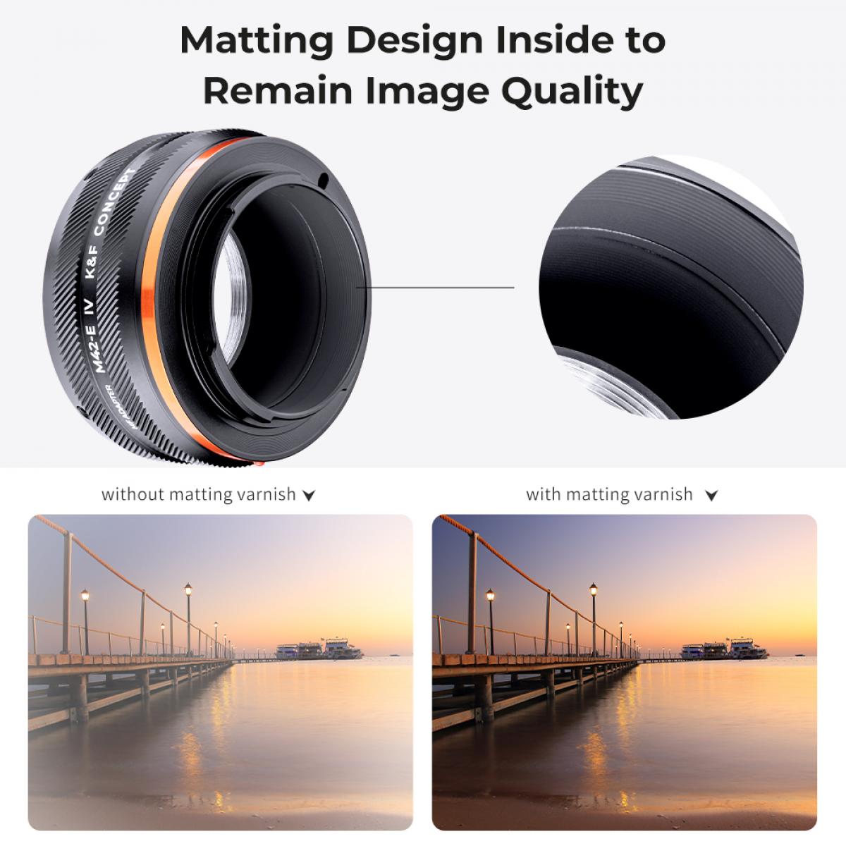 Prueba la versatilidad del adaptador de objetivos de la serie M42 para cuerpos de cámara de la serie Sony E, que ofrece un control totalmente manual y un diseño estable y antideslizante para mayor seguridad. El logotipo rojo garantiza una alineación precisa y facilita tanto la instalación como el desmontaje. Este adaptador está fabricado con una combinación resistente y lisa de anillo de unión y montura de bayoneta, lo que elimina cualquier posible aflojamiento. El cuerpo del anillo, de alta precisión y resistente, fabricado en aleación de aluminio y magnesio, permite un desmontaje cómodo y suave, y ofrece la posibilidad de enfoque macro y infinito. Mejora tus habilidades fotográficas con este adaptador fiable y repleto de funciones.