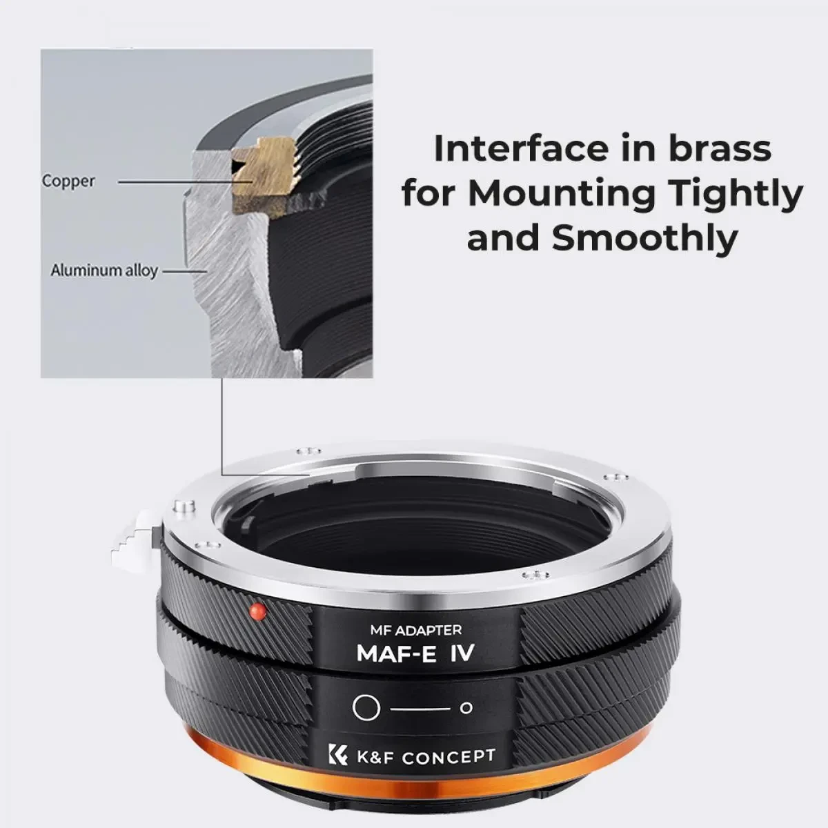 • Gracias a su preciso acabado con alta tolerancia, este adaptador de objetivo y el objetivo se acoplan de forma suave y firme a la montura, lo que permite ajustar y enfocar, y le permite acoplar objetivos Sony Alpha A y Minolta AF con montura de rosca a una cámara Sony E.