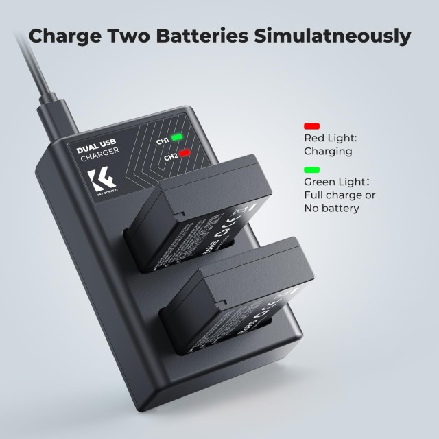Aumenta el tiempo de uso de tu cámara Canon con el kit de baterías K&F Concept LP-E17 de 1250 mAh y el cargador doble. Este kit, fino y compacto, incluye dos baterías de alto rendimiento y un cargador doble USB-C/Micro B que permite cargar las baterías a la vez o por separado, lo que garantiza un flujo de trabajo eficiente y un rendimiento prolongado.