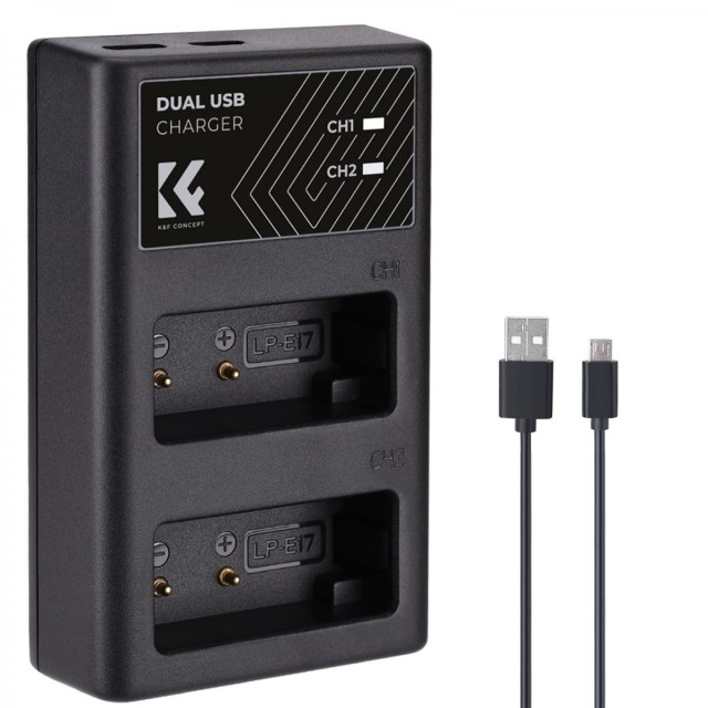 Cargador de baterías K&F CONCEPT para Canon LP-E17. Cargador con doble interfaz tipo C/Micro USB, fácil de transportar cuando se viaja, para capturar cualquier momento especial; puede cargar 1 o 2 baterías LP-E17 a la vez,