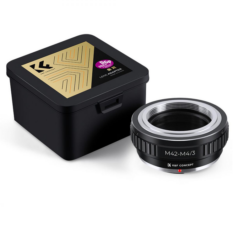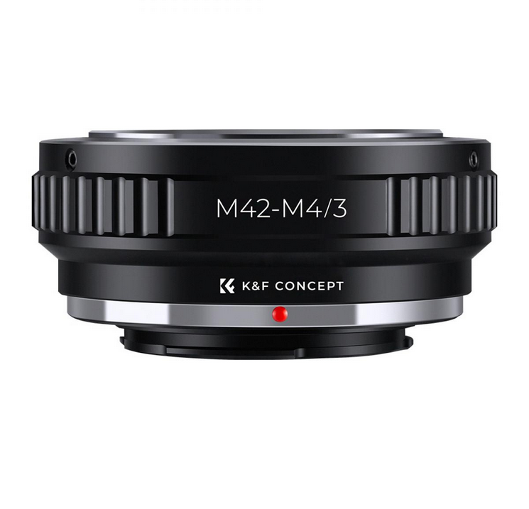 El adaptador K&F de montura M42 a M43 MFT permite utilizar objetivos con montura M42 en cuerpos de cámara con montura Micro 4/3 (MFT). Este adaptador es compatible con una amplia gama de cámaras Micro Four Thirds de Panasonic, Olympus, JVC, DJI, Kodak y Blackmagic. Está fabricado en latón y aluminio resistentes y garantiza un control manual estable y preciso con soporte para el enfoque al infinito. Para objetivos de formato medio pesados, se recomienda utilizar un soporte para teleobjetivos y un trípode para obtener una toma equilibrada.