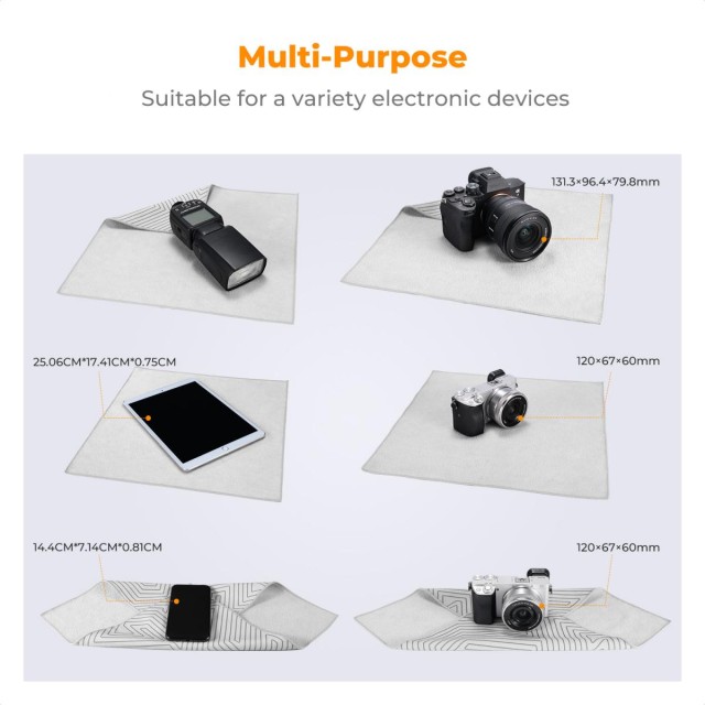 - * 【Resistente y fiable】Este paño mágico, mejorado para satisfacer las necesidades específicas de los equipos fotográficos y electrónicos, resiste eficazmente los arañazos y rozaduras del día a día y protege las superficies de los dispositivos contra daños. Además, ofrece resistencia al polvo y a la humedad, por lo que es ideal para su uso en diversos entornos y garantiza una protección duradera de tus dispositivos.