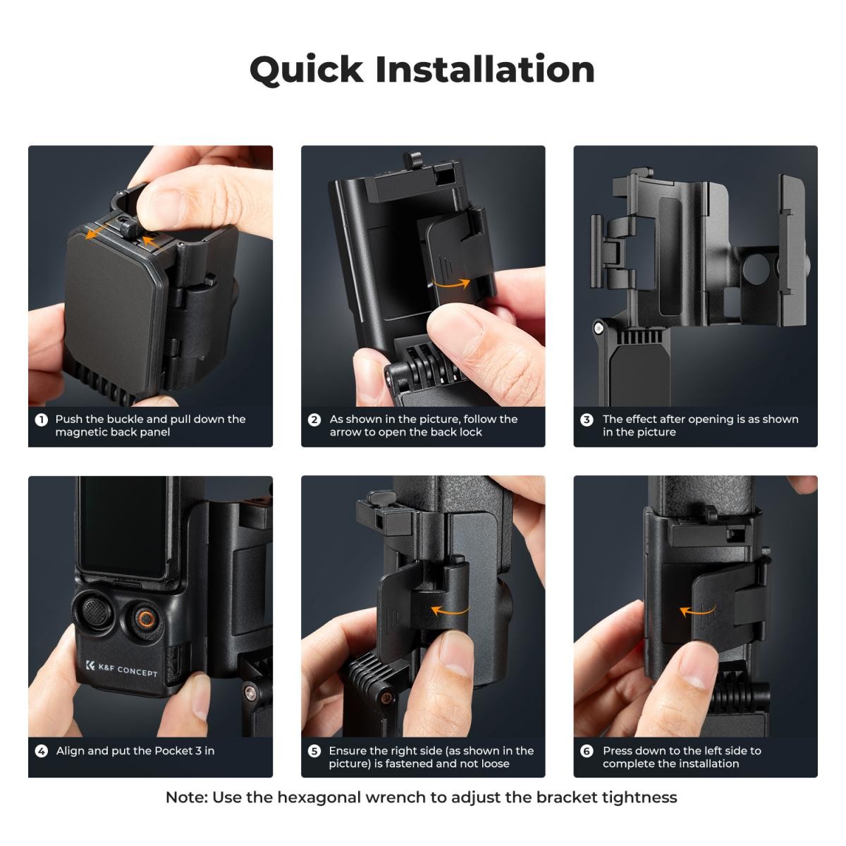• * 【Soporte magnético versátil】Este soporte magnético de K&F Concept está diseñado exclusivamente para la DJI OSMO Pocket 3. Cuenta con potentes imanes y un ángulo ajustable; es portátil y compacto, garantiza un control total de la cámara, amplía las posibilidades de grabación y ofrece un apoyo durante la filmación.
