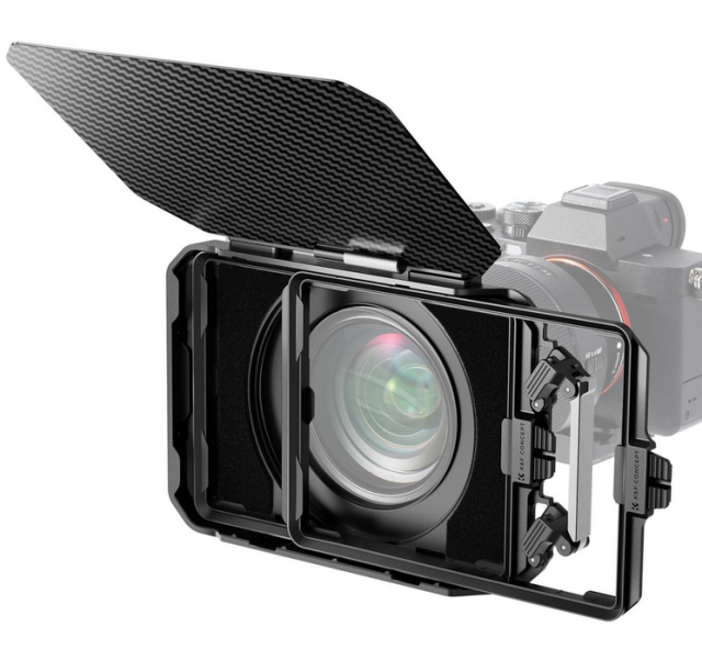 El kit K&F Matte Box incluye 5 anillos adaptadores y 2 marcos para filtros fabricados en fibra de carbono ligera, que garantizan un excelente control de la luz y compatibilidad con diversos objetivos.