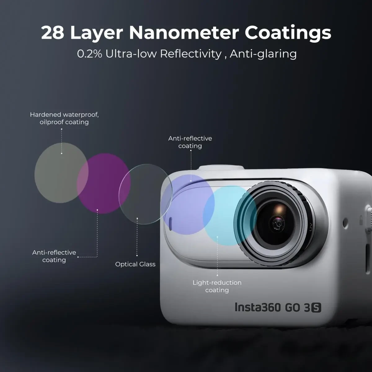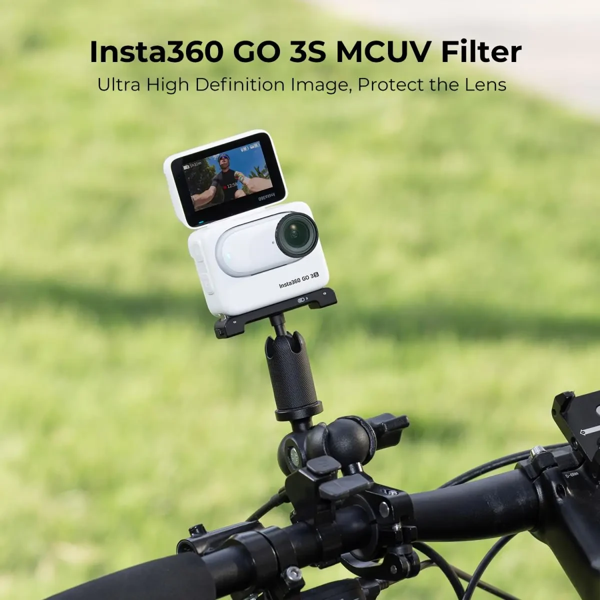 Filtro protector K&F MCUV 28. Filtro UV multicapa compatible con la cámara de acción Insta360 GO 3S. Diseñado específicamente para las cámaras de acción Insta360 GO 3S. Incluye 1 filtro UV. El filtro UV tiene dos funciones: proteger el objetivo y evitar que la radiación UV afecte a la calidad de la imagen.