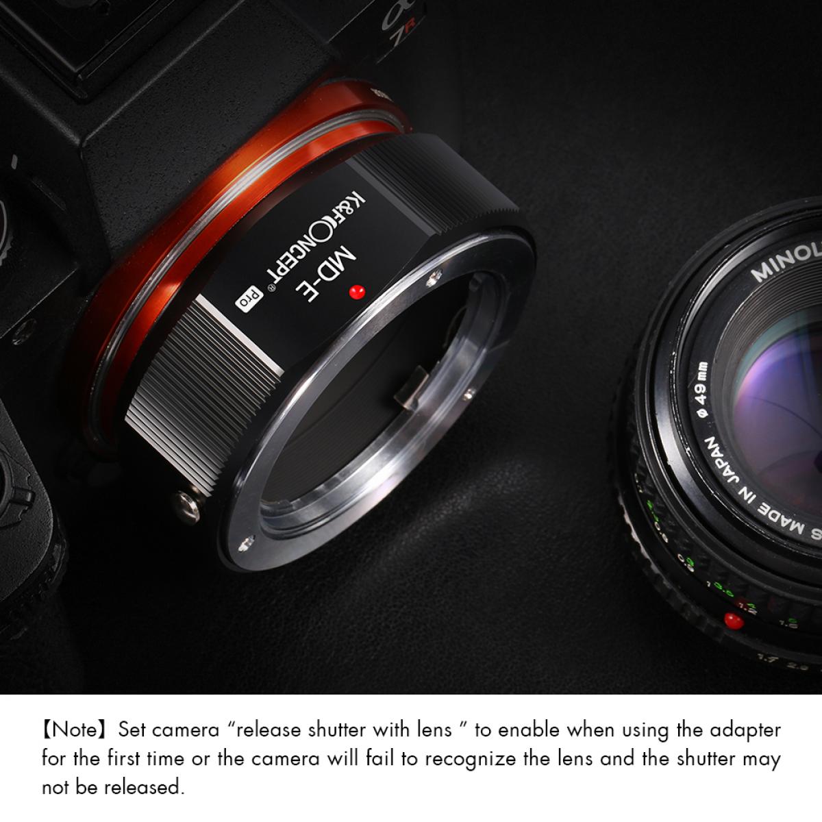 • MD to NEX Lens Mount Adapter for Minolta MD MC Mount Lens to NEX E Mount Mirrorless Cameras for Sony A6000 A6400 A7II A5100 A7 A7RIII K&F Concept