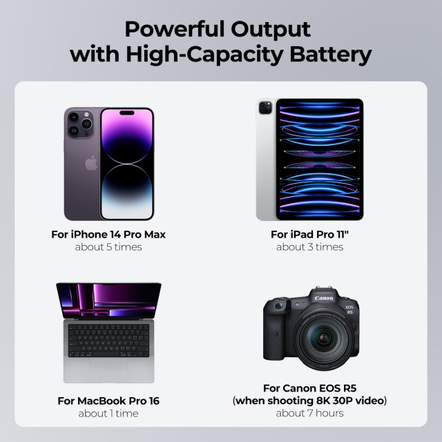 * 【Fácil de transportar】99 Wh es la potencia máxima permitida en aviones y es ideal para la mayoría de las luces con montaje en V; cabe en la palma de la mano y es fácil de transportar