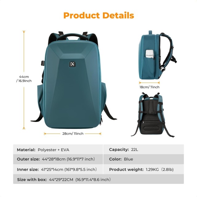 • K&F Multi functional Haedshell Camera Backpack Blue