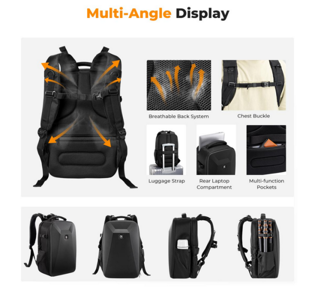Esta mochila multifuncional para cámara con carcasa rígida ofrece una protección resistente y múltiples opciones de almacenamiento, por lo que es ideal para los fotógrafos que viajan.