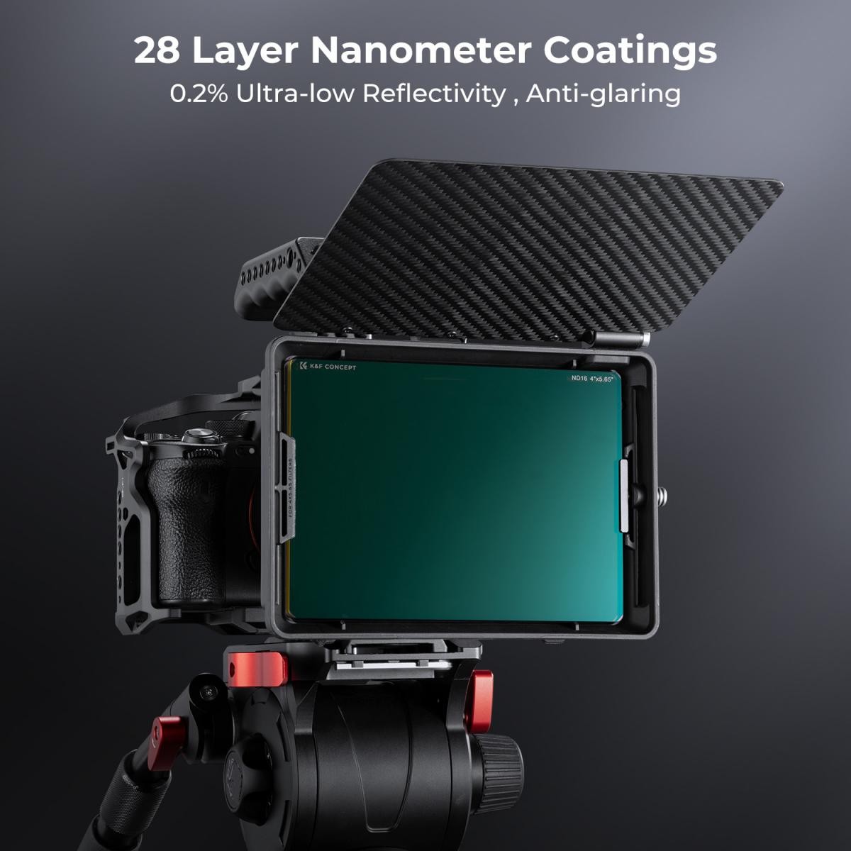 • * 【Compatible con diversos matte boxes】El filtro ND16 de K&F Concept Matte Box tiene un tamaño estándar y es ampliamente compatible con soportes de filtro de 4 x 5,65" y matte boxes. Es compatible con filtros de Tilta, SmallRig y otras marcas, y es ideal para aplicaciones cinematográficas profesionales.