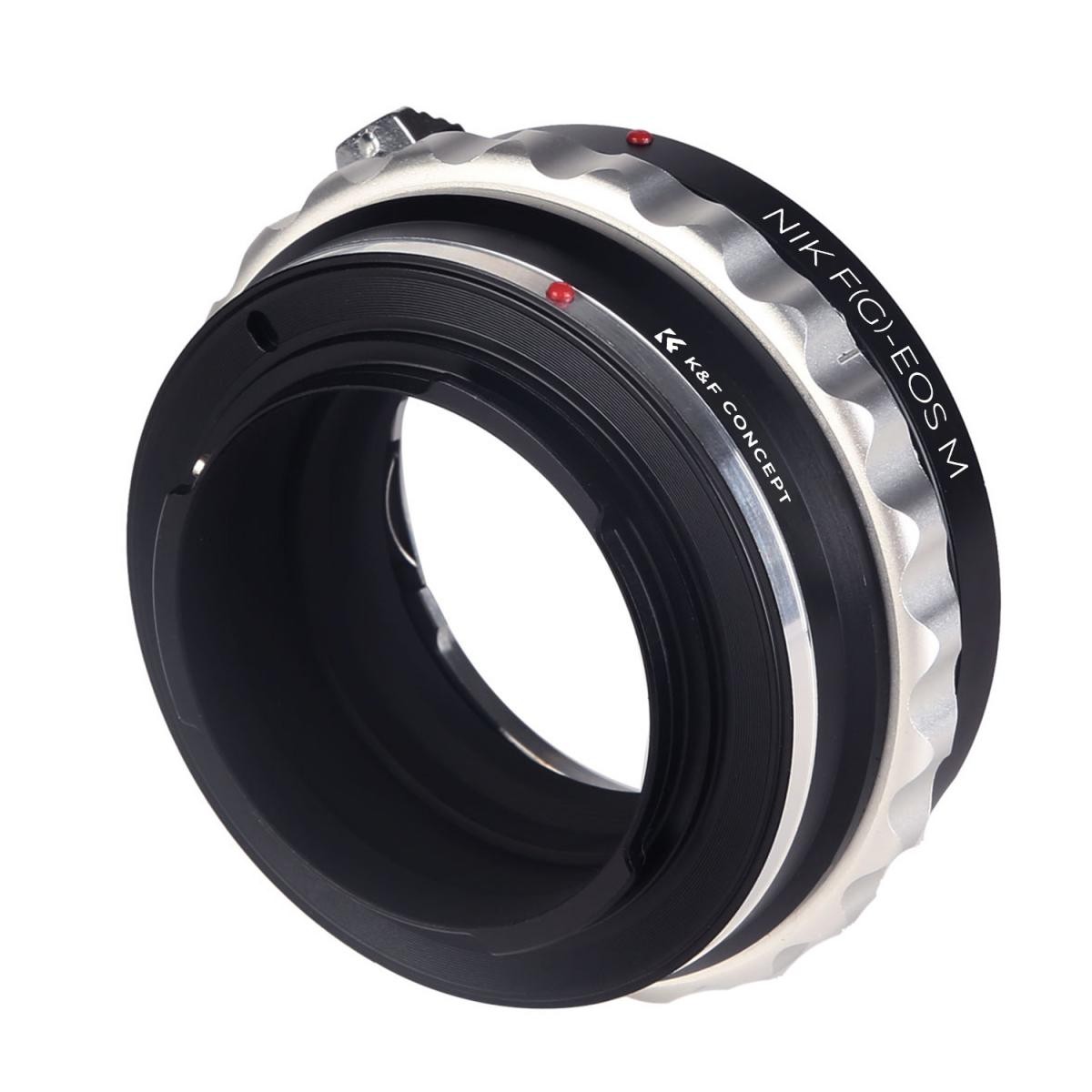 El adaptador K&F Concept Nikon G/F/AI/AIS/D a Canon EOS M permite utilizar objetivos Nikon con montura F en cámaras sin espejo Canon EOS M. Está fabricado en latón y aluminio resistentes y ofrece un acoplamiento preciso y estable con control totalmente manual y enfoque infinito, lo que lo convierte en una herramienta excelente para los fotógrafos creativos.