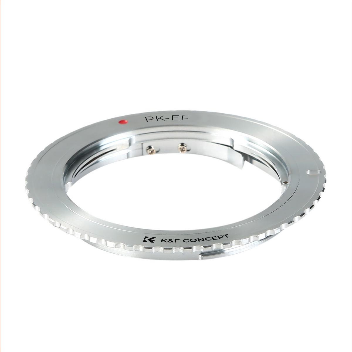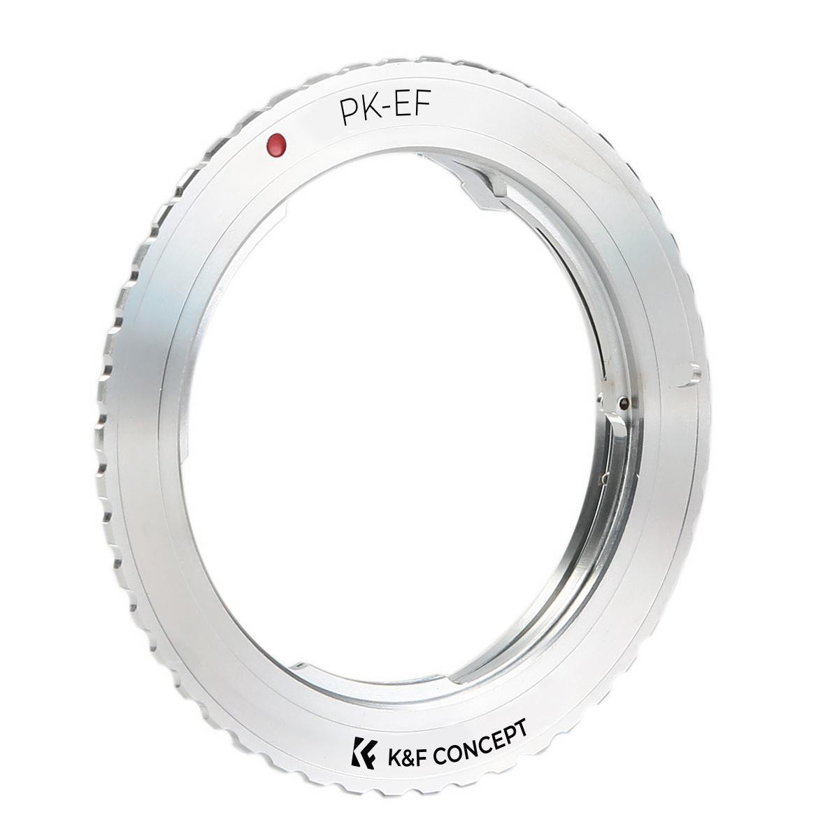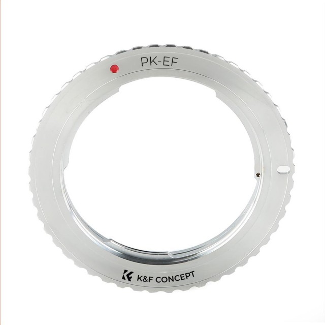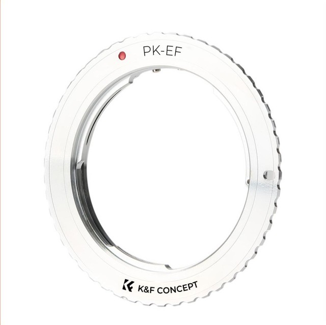 El adaptador K&F de Pentax K a Canon EOS permite utilizar objetivos con montura Pentax K en cámaras réflex digitales Canon EOS. Está fabricado en latón y aluminio resistentes, ofrece un control totalmente manual y permite enfocar al infinito.