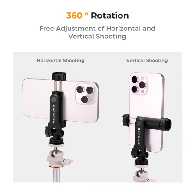 K&F Phone Holder Clamp With Two Cold Shoe Mount 360° Adjustment