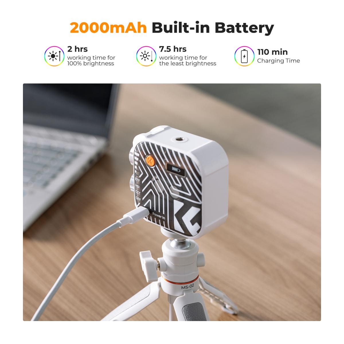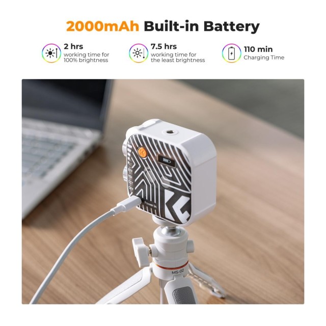 K&F RGB Full Color Portable Photography Light 360° 2500K - 9900K CRI 96+ Built-in 2000mAh Battery 21 Lighting Effects White