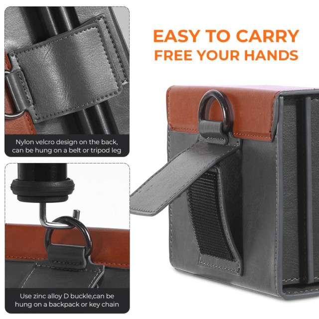 Para facilitar su transporte, el estuche ofrece dos opciones: se puede llevar en el cinturón mediante una cinta de nylon con velcro o fijarlo a la mochila mediante una hebilla en forma de D de aleación de zinc.