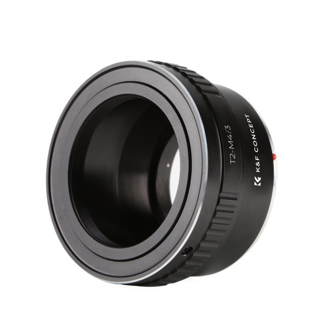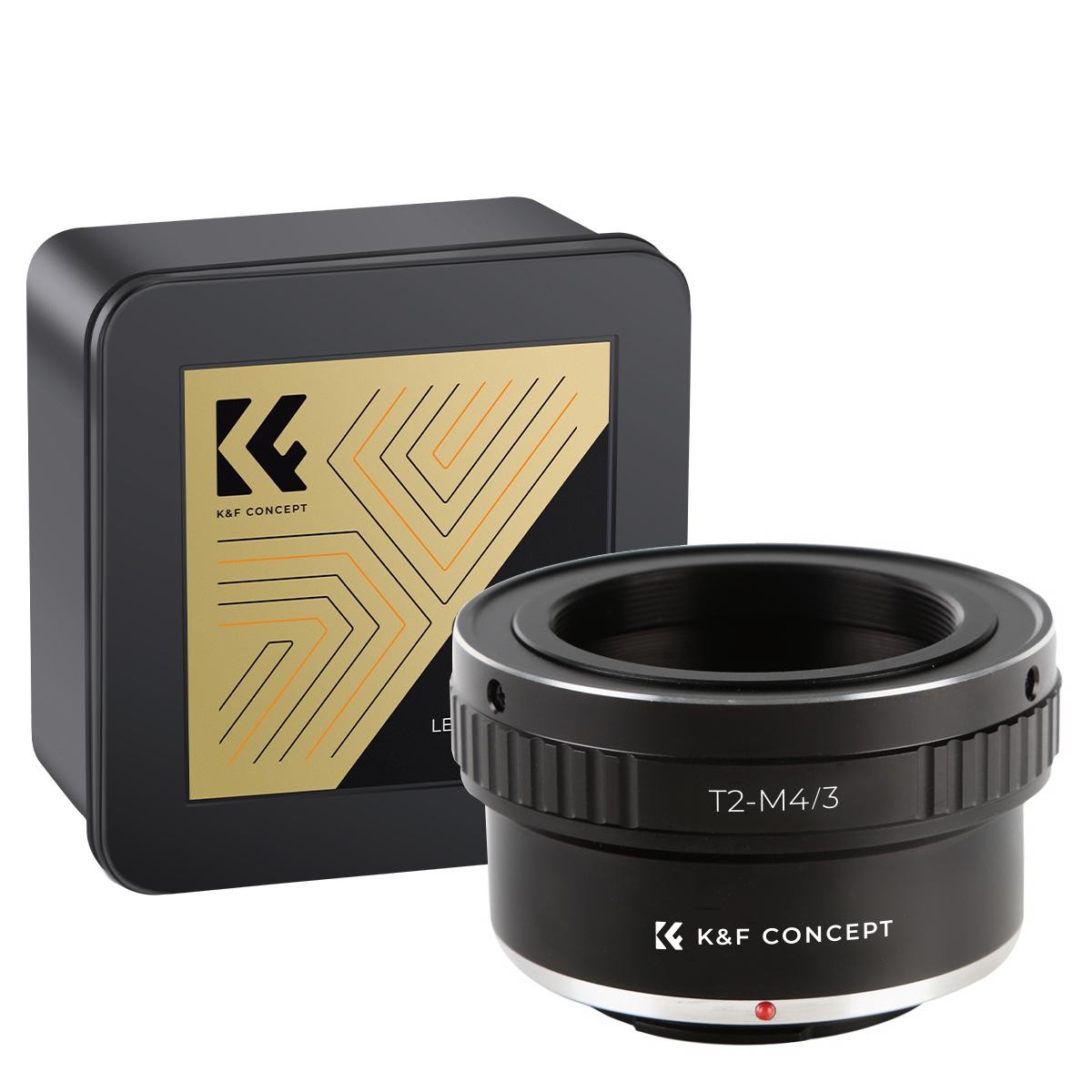 El adaptador de objetivo K&F T2 a Micro Four Thirds (MFT/M43) permite utilizar objetivos con montura T2 en cámaras Micro 4/3. Está fabricado en latón y aluminio resistentes, ofrece una conexión estable y precisa, y admite el control manual y el enfoque continuo para una fotografía versátil.
