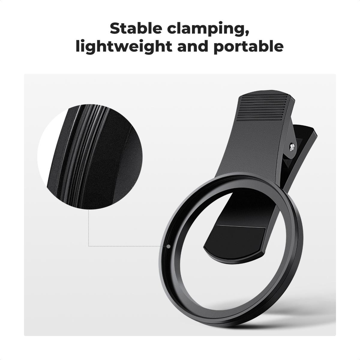 • * 【Amplia compatibilidad】El clip se puede acoplar a la mayoría de los teléfonos inteligentes y permite tomar fotografías como con una cámara réflex profesional. El filtro VND de 52 mm también es compatible con cámaras réflex digitales con rosca de ø 52 mm.