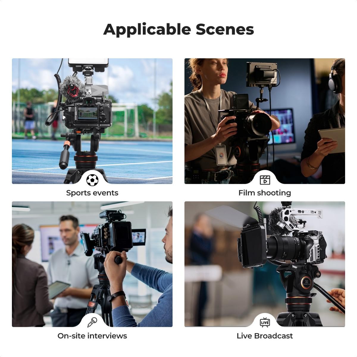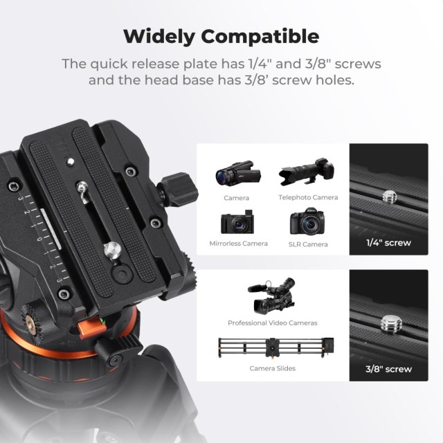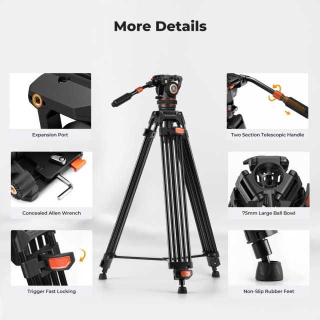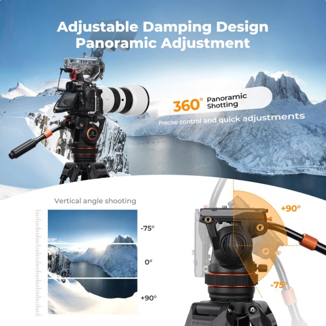 El K&F VA3+BV10 es un sistema de trípodeprofesional con cabezal fluido diseñado para movimientos suaves y precisos de la cámara. Gracias a la amortiguación hidráulica, a la gran rótula de 75 mm de diámetro y a la placa de fijación rápida universal compatible con los sistemas DJI RS2/RS3 y Manfrotto, garantiza estabilidad, flexibilidad y facilidad de uso tanto para la grabación de vídeo como para la composición fotográfica precisa.