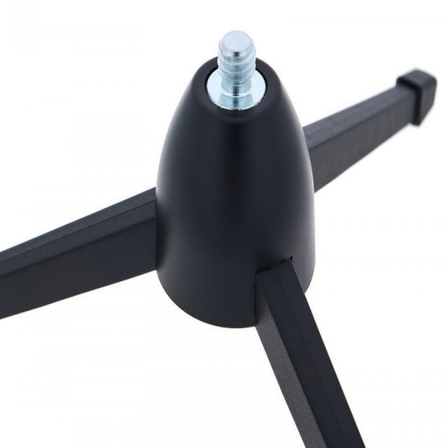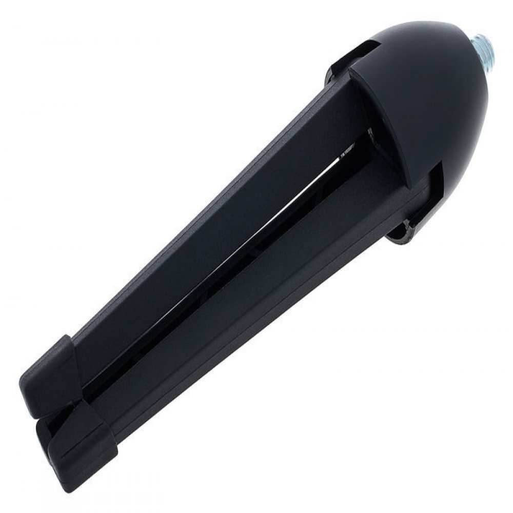 Soporte de micrófono de mesa económico y práctico para uso profesional. Base de plástico estable con patas plegables de plástico ligero y rosca de 3/8".
