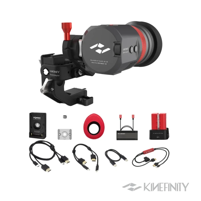 El visor electrónico Kinefinity EAGLE HDMI es compatible con la mayoría de las cámaras de cine, cámaras réflex digitales y cámaras sin espejo. Ofrece función HDMI, pantalla Micro-OLED de 1080p, óptica de primera calidad, funcionamiento silencioso y retardo nulo, todo ello en un diseño ultraligero y elegante.