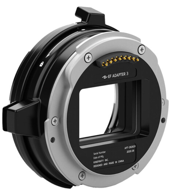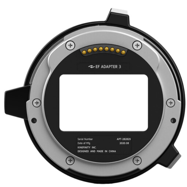 El adaptador Kinefinity A230-001-01 EF 3 Mounting Adapter, diseñado para integrarse a la perfección con los objetivos Canon EF, convierte cualquier cámara MAVO (Edge 8K/6K, mark2, LF) o TERRA 4K en una potente cámara EF de formato completo. Los contactos electrónicos chapados en oro transmiten datos sobre la apertura, el IS y el EXIF, al tiempo que permiten el servozoom y el autofoco en objetivos compatibles (Sigma ART, Canon CN-E, etc.). El anillo de bloqueo activo patentado encaja los objetivos con un giro de 60°; gracias a la calibración de fábrica precisa, no se necesitan herramientas, ni holguras ni arandelas. El anillo dentado del diafragma funciona a la perfección con cualquier follow focus de 0,8 mod y el diseño empotrado de la brida evita daños en el objetivo durante el cambio. Con un peso de tan solo 200 g y un acabado de aluminio anodizado de calidad espacial, prácticamente no añade peso, pero soporta objetivos cinematográficos de distancia focal fija de hasta 5 kg.