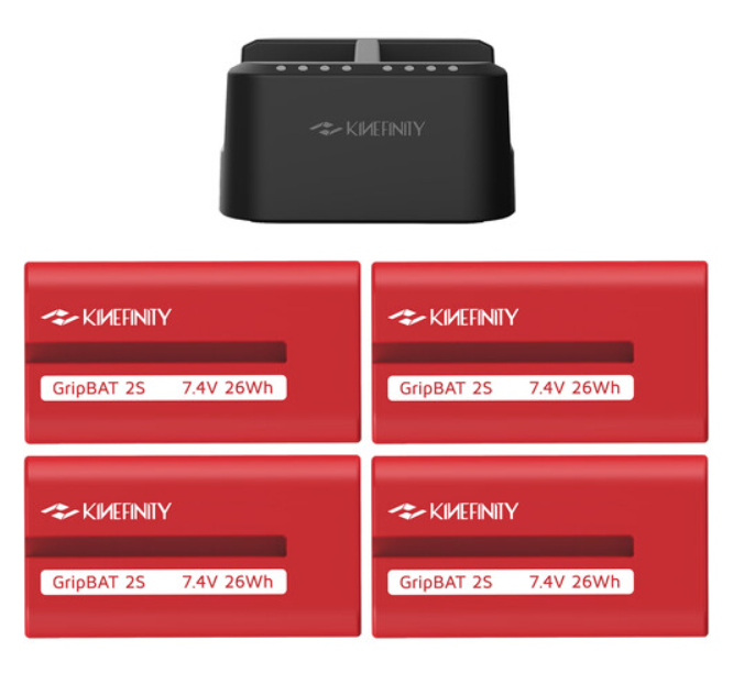 El paquete Kinefinity A941-203-02 incluye cuatro baterías GripBAT 2Si de la serie L (26 Wh, 7,4 V, 5 A) sin efecto memoria y con protección total contra sobrecargas, descargas excesivas y sobrecalentamiento; cada una pesa solo 104 g y presenta el característico diseño en rojo y blanco. El cargador híbrido dual PD incluido detecta automáticamente el tipo de batería y carga dos baterías de la serie L, dos baterías BP-U30 (GripBAT 4S) o una de cada tipo a la vez mediante carga rápida PD real (3 A para una / 2 A para dos). Alimentado por cualquier fuente USB-C PD de 60 W+ (adaptador Kinefinity de 65 W recomendado), los LED multicolores brillantes muestran el estado en tiempo real de cada posición. Con un peso de tan solo 95 g, el cargador está listo para viajar y garantiza el futuro de su flujo de trabajo en los ecosistemas Sony NP-F y los dispositivos Kinefinity: es ideal para el visor electrónico EAGLE, KineMON, paneles LED o como batería de repuesto intercambiable en caliente en la placa base KineKIT-Edge.