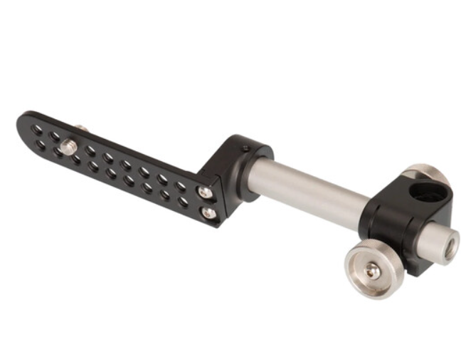 El soporte para EVF A612-507-01, fabricado por Movcam para Kinefinity, es una solución minimalista para fijar de forma segura un EVF o un monitor compacto a las cámaras MAVO Edge 8K/6K y MAVO Mark 2. Un único tornillo de 1/4"-20 con pasadores de posicionamiento tipo ARRI se encaja en la placa superior de la cámara, mientras que el soporte del EVF permite una inclinación suave de 90° mediante una articulación de fricción, sin herramientas y sin vibraciones. El diseño de perfil bajo del soporte mantiene el centro de gravedad cerca de la cámara, lo que resulta ideal para gimbals, Steadicams o rigs manuales.