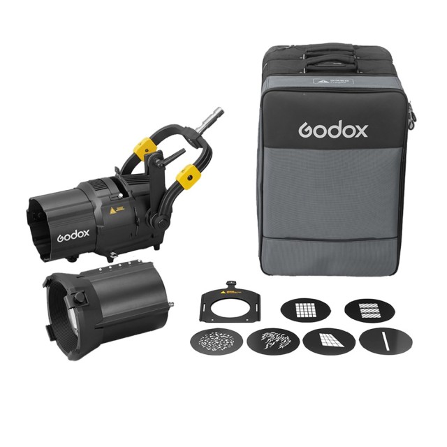 El accesorio Godox GP36K Projection Attachment convierte los potentes flashes KNOWLED en un preciso sistema de iluminación puntual. Gracias a su óptica avanzada, sus lentes intercambiables y los gobos incluidos, permite modelar la luz de forma creativa, realizar proyecciones nítidas y conseguir efectos cinematográficos.