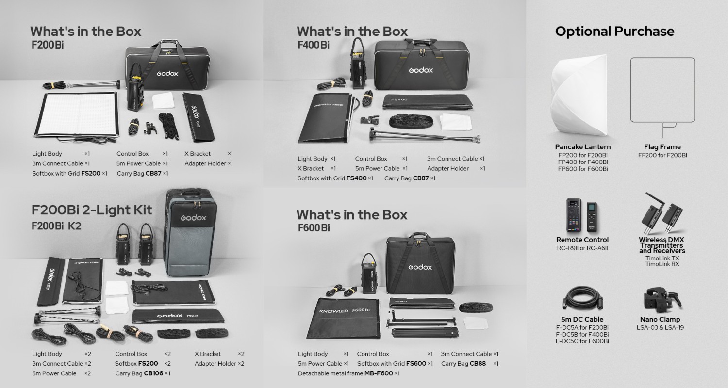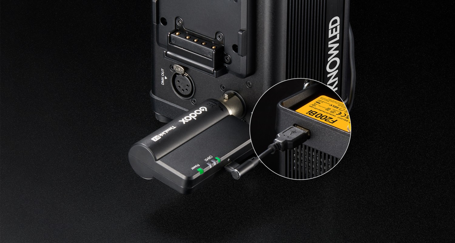 El control de la luz es muy flexible y admite varios métodos, incluyendo el control local en el controlador de la unidad, DMX512, el control inalámbrico LumenRadio CRMX y la conexión inalámbrica integrada de 2,4 GHz y Bluetooth. Esto permite una integración fluida en los sistemas de iluminación existentes y el control remoto mediante consolas compatibles o dispositivos móviles. La luz también es compatible con el mando a distancia opcional Godox RC-R9 y la aplicación Godox Light App para mayor comodidad.
