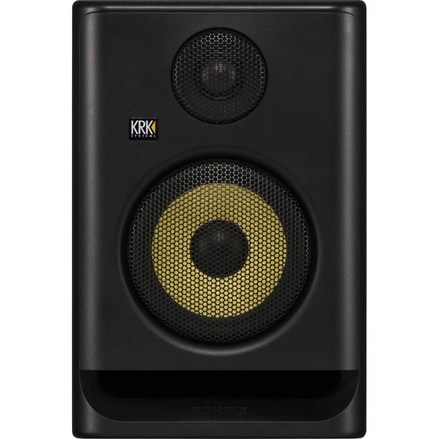El KRK Rokit 5 G5 es un monitor de estudio de referencia activo diseñado para la posproducción, la mezcla y la masterización. Su caja acústica cerrada con puerto de graves frontal está equipada con un transductor de graves de 5" y un tweeter de 1". Los tres modos de escucha permiten utilizar los monitores para tres tipos diferentes de trabajo: mezcla y masterización, creación y escucha comercial, y escucha centrada en el rango medio. Para adaptar la acústica de la sala se utiliza un procesador DSP interno, que ofrece 25 preajustes de ecualizador. El biamplificado corre a cargo de un amplificador de clase D con una potencia de 30 W + 20 W.