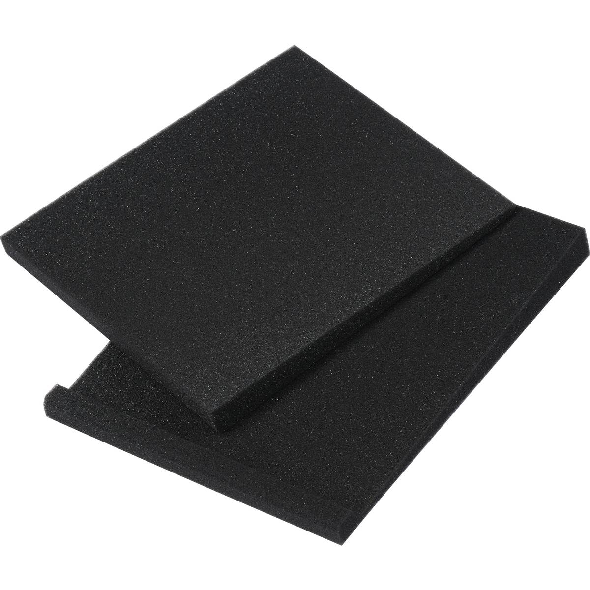 Lo ideal es utilizar bases para monitores para su instalación, pero si necesitas colocar los monitores directamente sobre la mesa de trabajo, te servirán las almohadillas de espuma, que evitarán las resonancias transmitidas a la mesa y, por lo tanto, la distorsión de la respuesta en frecuencia y la dinámica de la reproducción. Además, las almohadillas están ligeramente biseladas y esta elevación ayudará a orientar los monitores directamente hacia tu espacio de escucha.