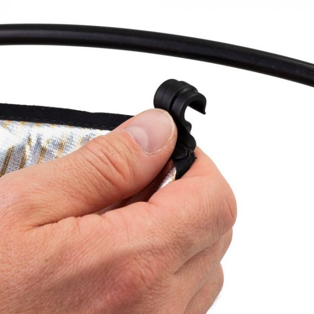 ¡HaloCompact cuenta con un diseño especial y patentado de reflectores que los hace aún más fáciles de transportar que cualquier otro reflector estándar! A diferencia de muchos reflectores tradicionales con marcos de acero, el HaloCompact de 82 cm está fabricado con la nueva e innovadora tecnología RapidExoframe de Lastolite by Manfrotto. El marco plegable de aluminio ligero se encaja fácil y rápidamente, y la cubierta del reflector se fija sencillamente al marco. El ingenioso diseño del RapidExoFrame permite dividir el marco en pequeñas piezas y, junto con las partes textiles plegadas, guardarlo en una funda de transporte de 6,5 x 27 x 6,5 cm (2,5" x 10,5" x 2,5") y con un peso total de tan solo 335 g.