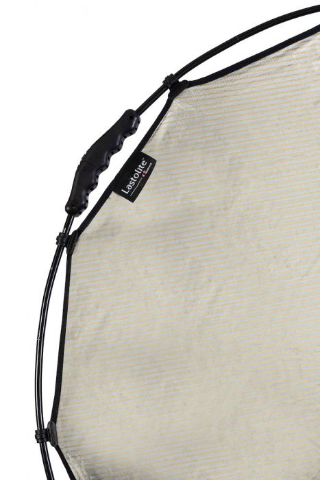 El acabado dorado, también conocido como Sunlite, se caracteriza por una combinación de franjas plateadas y doradas que ofrecen un tono reflectante ligeramente más cálido que el acabado plateado estándar. Es la opción ideal para tonos de piel cálidos y para fotografiar durante la hora dorada, ya que realza los colores cálidos del sol.