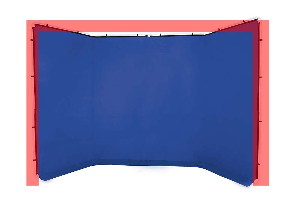 Aunque el tejido cepillado no es reflectante, la combinación de anchura y altura es suficiente para colocar los objetos a la distancia de trabajo adecuada y elimina cualquier variación en el color azul del croma. Los tejidos Panoramic también están disponibles en otros colores