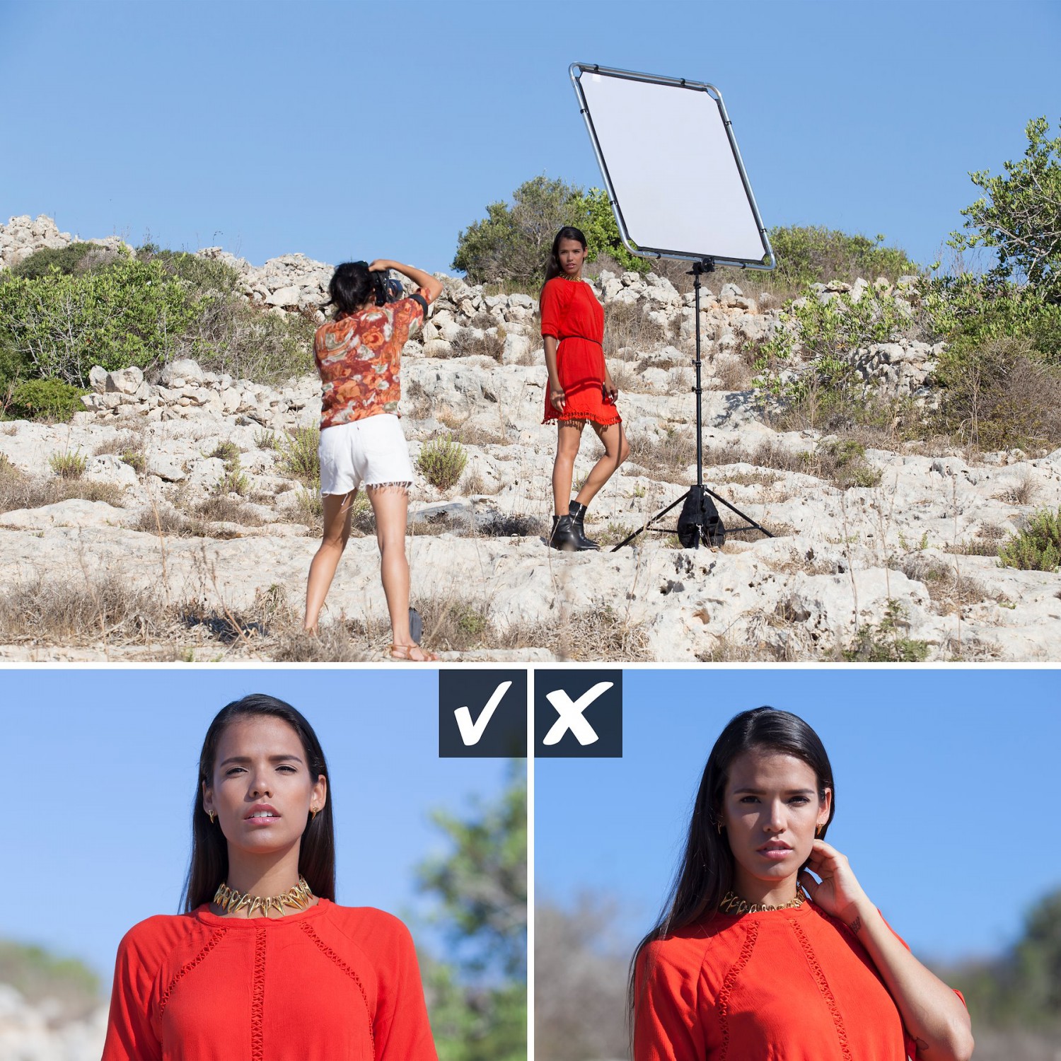 El kit pequeño Skylite Rapid de 1,1 x 1,1 m incluye un marco Skylite Rapid de 1,1 x 1,1 m (LL LR811), un reflector plateado/blanco (LL LR81131R), un difusor de 1,25 pies (LL LR81107R) y una funda Skylite Rapid Rigid (LL LRCASE1025).