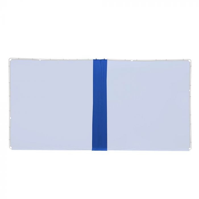El kit incluye tres soportes articulados que unen los marcos de aluminio y proporcionan una estructura estable y flexible. Además, el kit incluye una banda de unión azul con velcro para croma, que cubre las uniones de los marcos y los soportes y garantiza una superficie lisa y continua para el croma. Esta cobertura sin costuras es fundamental para una posproducción limpia y eficaz, ya que elimina los huecos visibles o las interrupciones en el fondo.