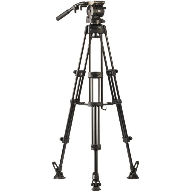 El kit del trípode HS-250M incluye el cabezal H25, las patas RT30B, el travesaño central BR-2B, las patas de apoyo FP-2B y la bolsa RC-30. Base de aluminio con una altura de 81 a 166 cm. Peso: 6,2 kg; capacidad de carga máxima del cabezal: 5 kg.