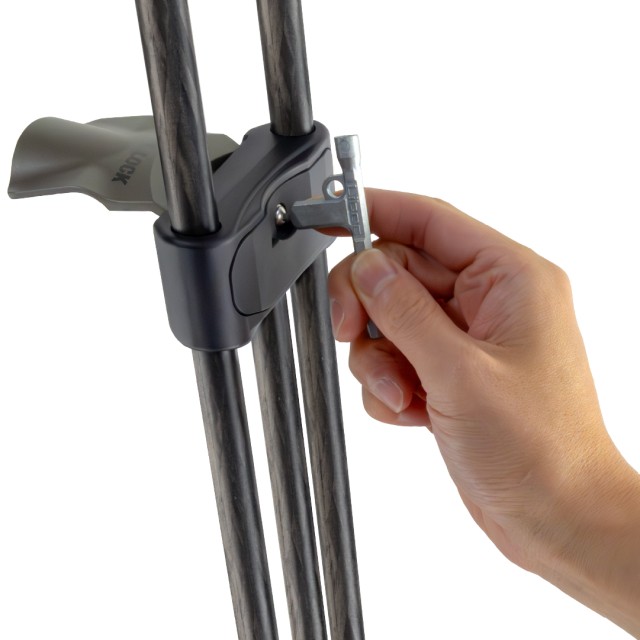 Con la herramienta incluida se puedeajustar fácilmentela fuerza del bloqueo del trípode. La principal ventaja es queel mecanismo de bloqueo de las patas es menos propenso a aflojarsequeen los trípodes con bloqueo rápido convencionales.