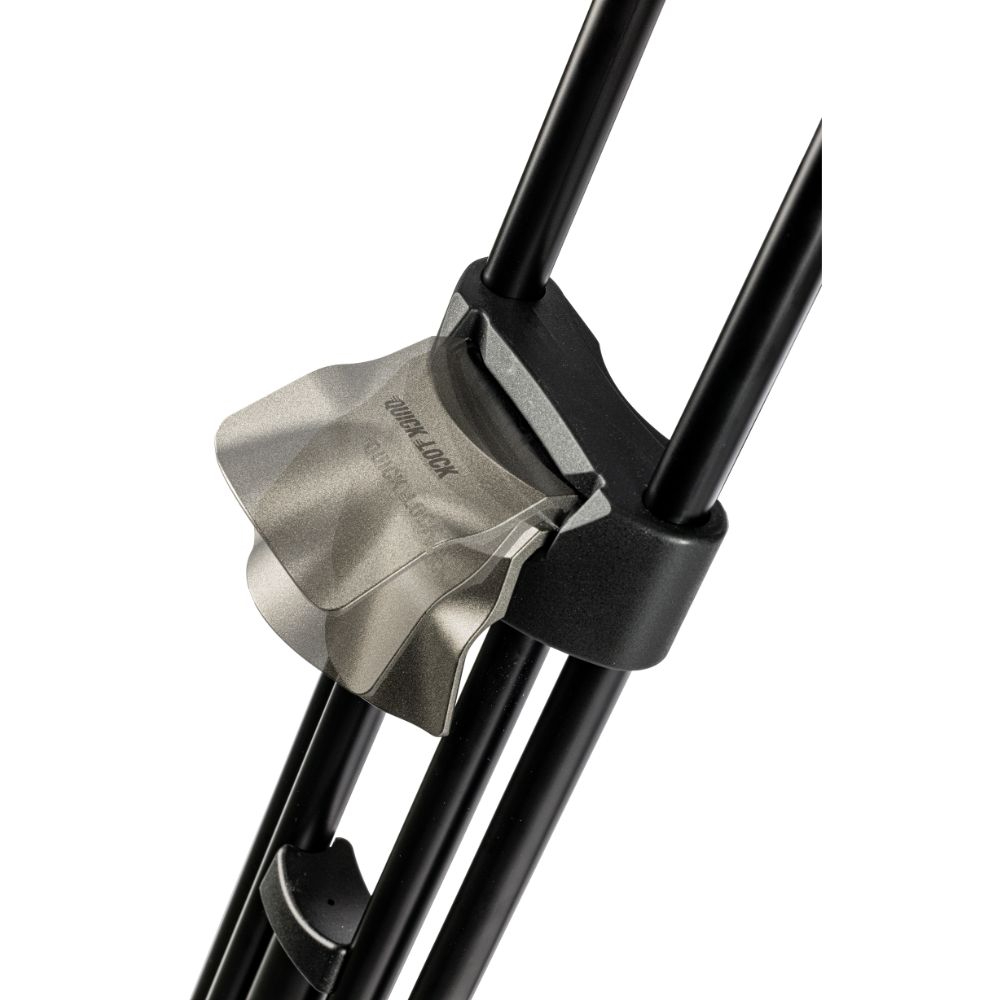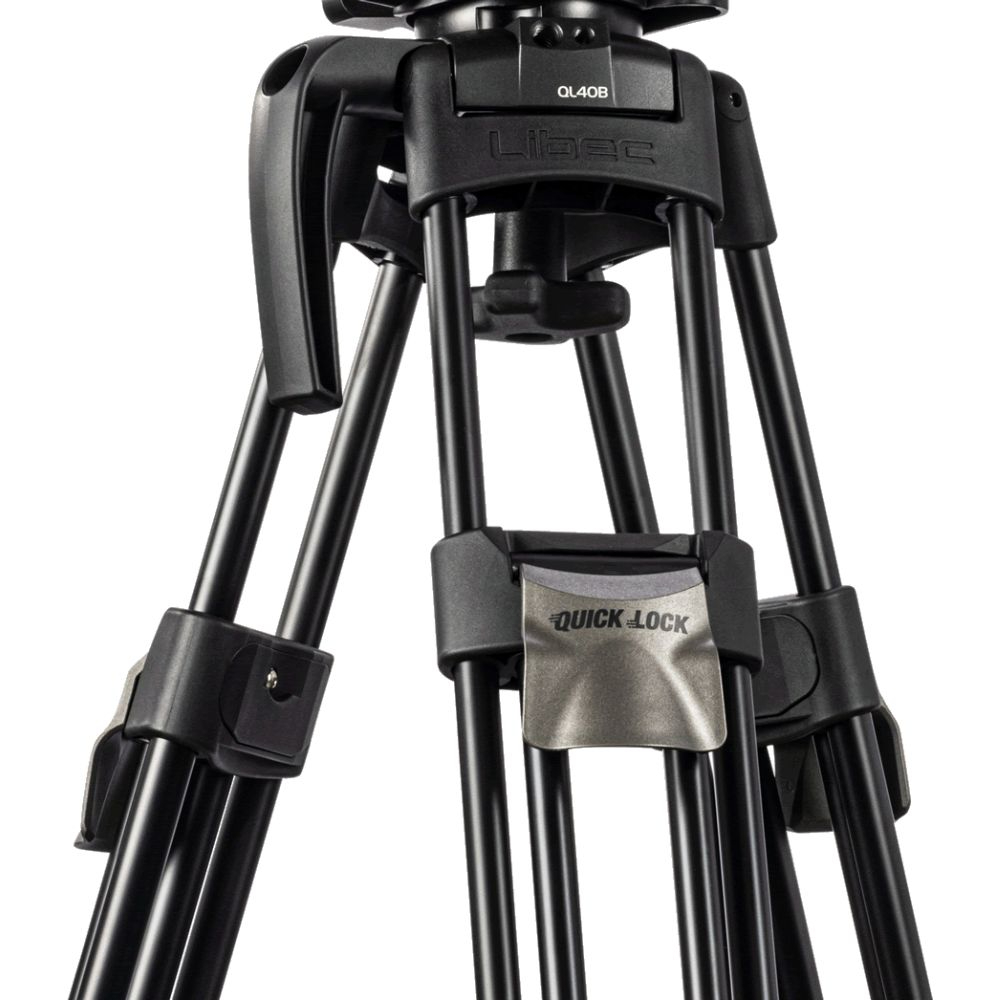 El mecanismo de bloqueo del trípode QL40B permite a los usuarios ajustar cómodamente la altura mediante los bloqueos de las patas, situados en la parte superior del trípode. La forma del cierre rápido Quick Lock tipo flip tiene un diseño ergonómico, lo que facilita el agarre con los dedos tanto desde abajo como desde los lados. Esto permite un montaje rápido y sencillo.
