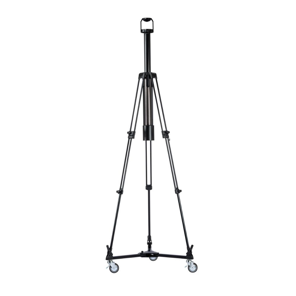 La unidad principal se puede separar de las ruedas del trípode (dolly) para facilitar su transporte, y todos los componentes son plegables. Esta unidad compacta se puede guardar en la funda opcional para trípode RC-80.