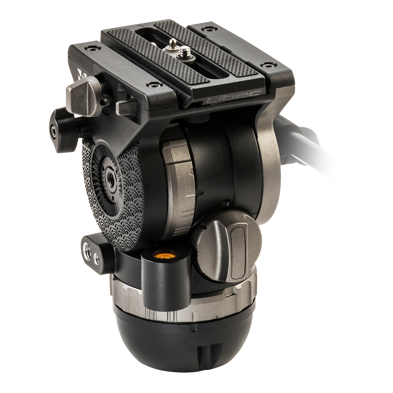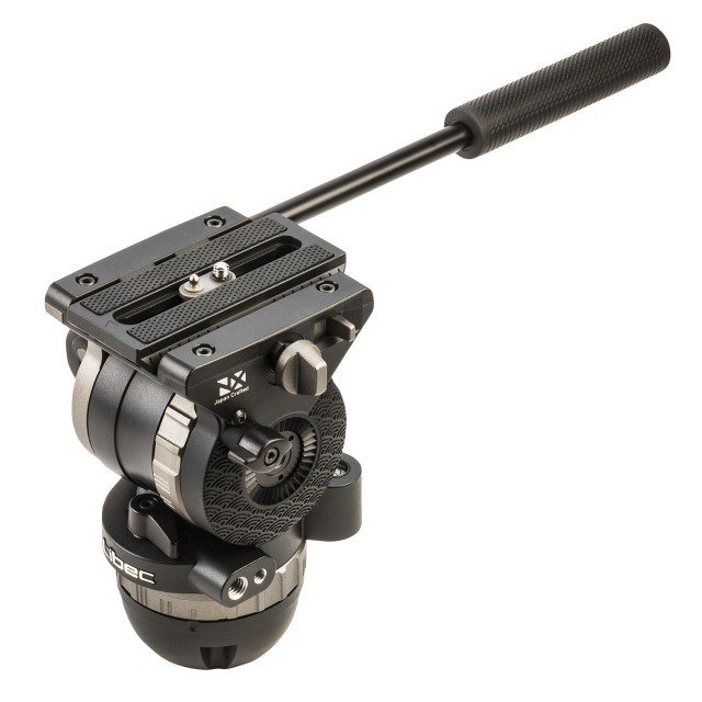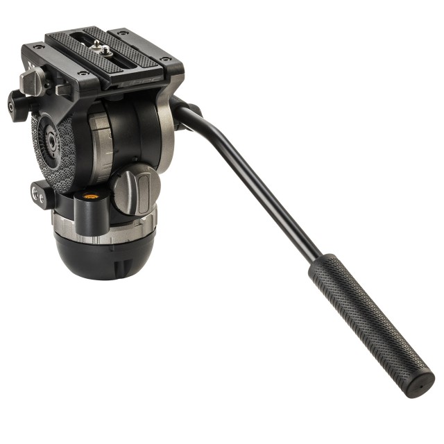 Cabezal de vídeo (para montaje esférico y plano de 75 mm) con palanca de panorámica y capacidad de carga de 10 kg.