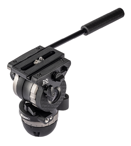 Cabezal de vídeo (para montaje esférico y plano de 75 mm) con palanca de panorámica y capacidad de carga de 10 kg.