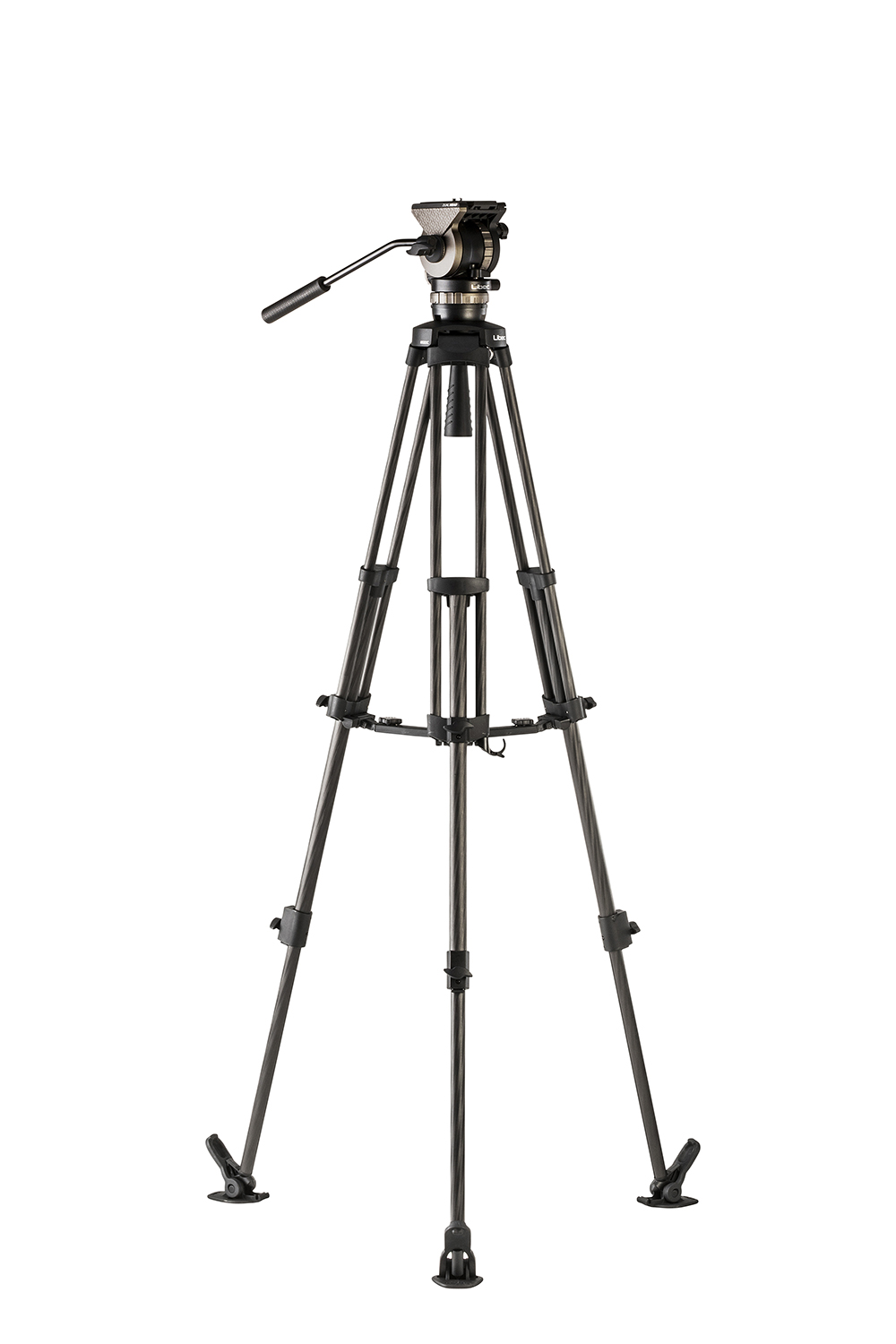 Juego de trípode de carbono con barra central para cámaras profesionales, incluidas las videocámaras de mano. El juego incluye los componentes Libec NH30 / RT20C / BR-2B / FP-1B / RC-20. El cabezal NH30 tiene una capacidad de carga de 10 kg. Peso: 3,8 kg; altura: 80 – 167 cm.