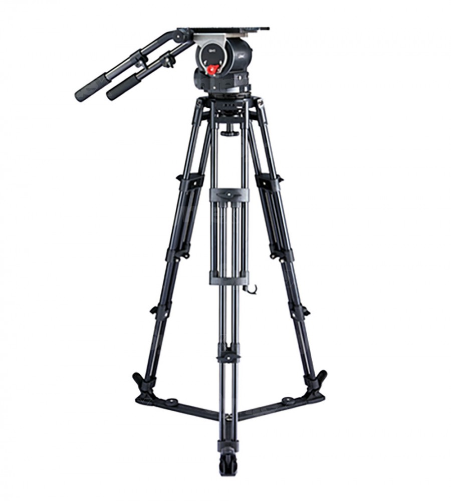 El kit de trípode para configuraciones de estudio más pequeñas se compone de un trípode T150B (dos secciones), una rótula QH1 (150 mm) y un soporte inferior SP-15B. Capacidad de carga de 40 kg, rango continuo del contrapeso de 15 a 35 kg, inclinación de +90° / -70°, peso de 21,6 kg, altura de 82 a 186,5 cm.